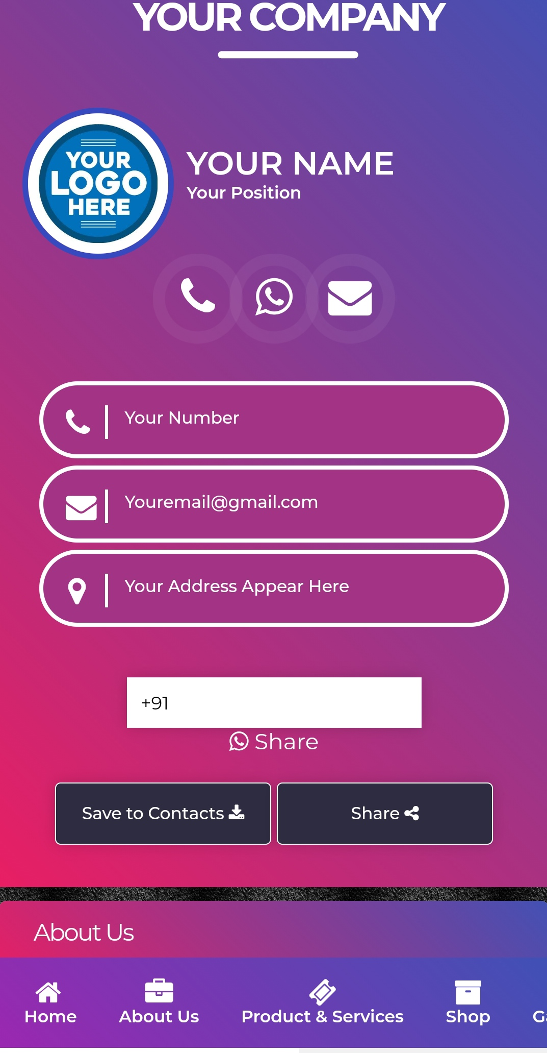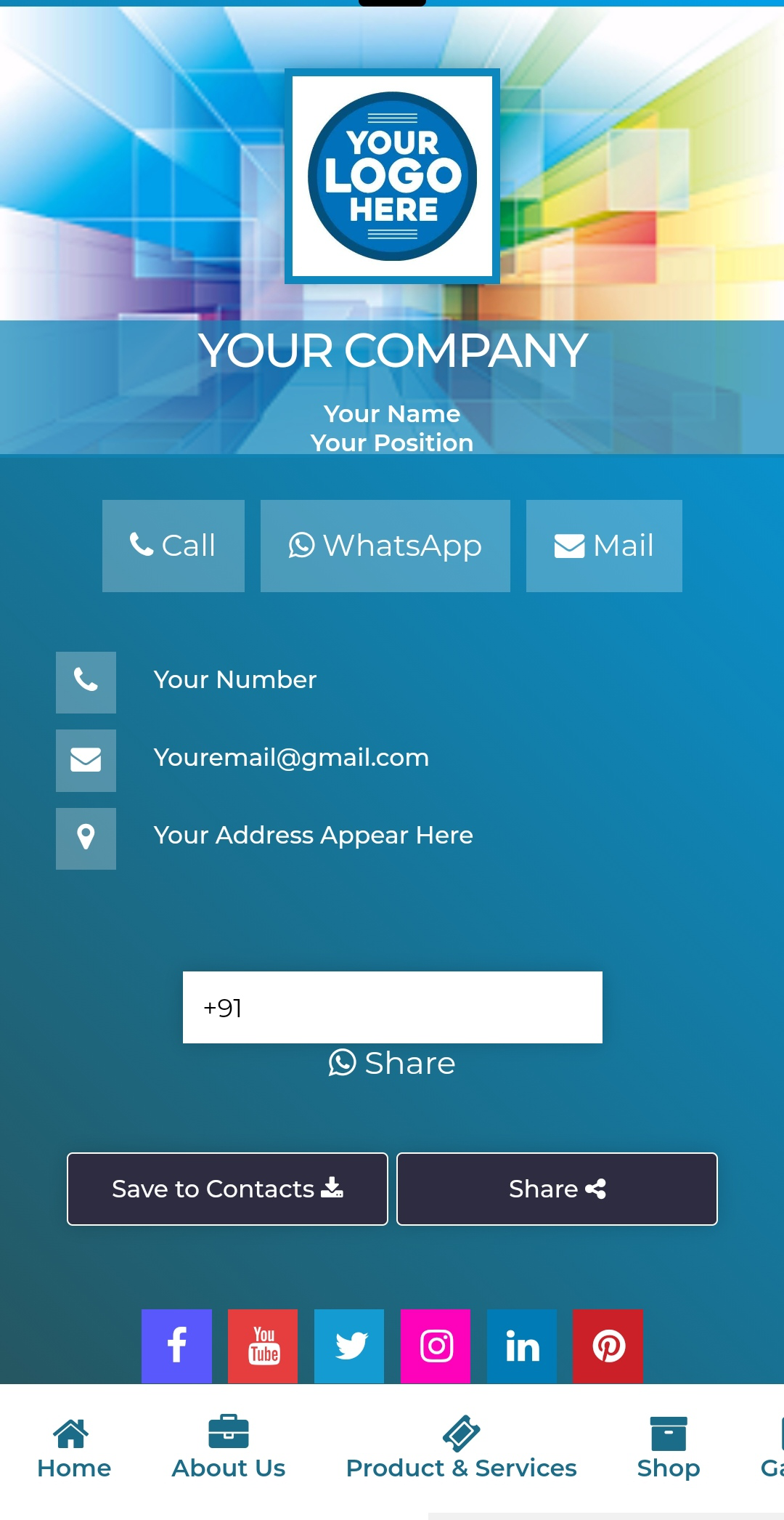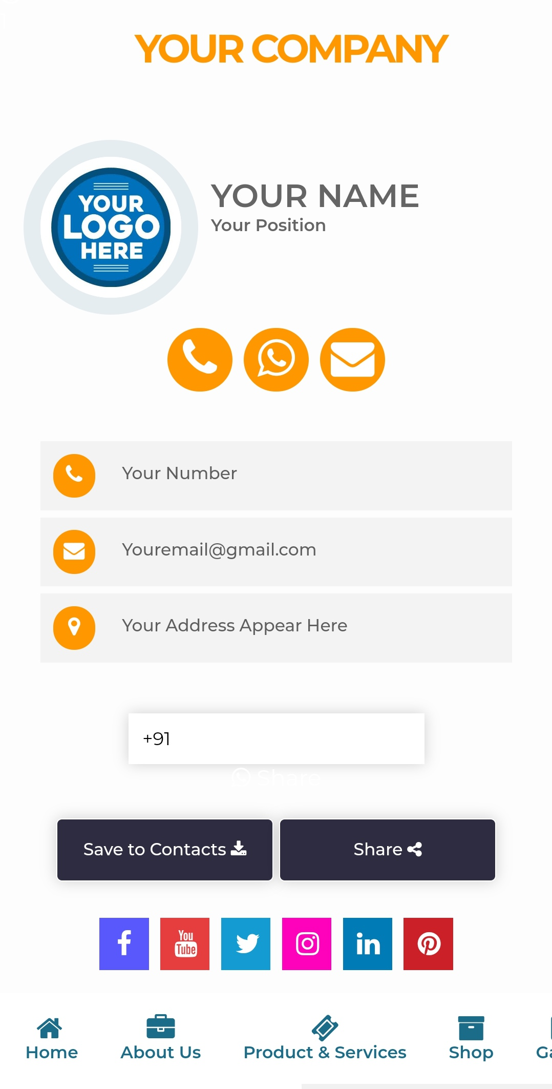 Design your digital visiting card in 2 minutes - it's easy, elegant and free. This Online Vcard is always in your pocket, never tears and never runs out. Your Digital Visiting Card can be easily updated with our user-friendly dashboard, so you won't need to re-print a business card again.