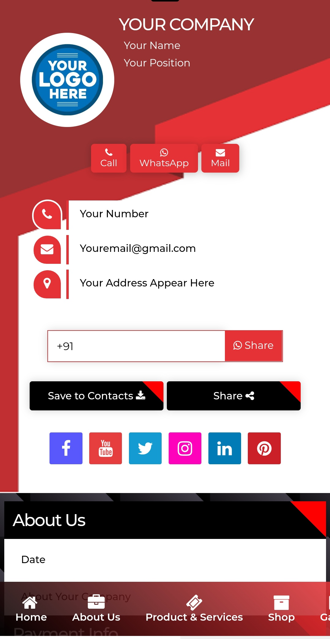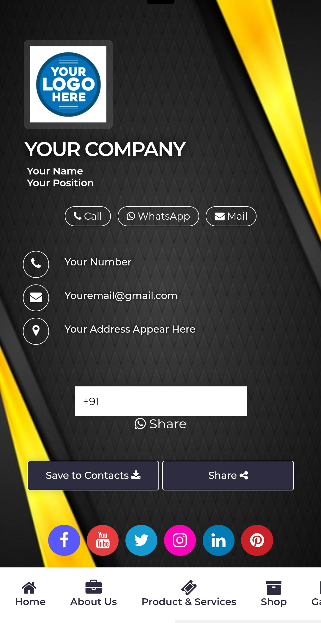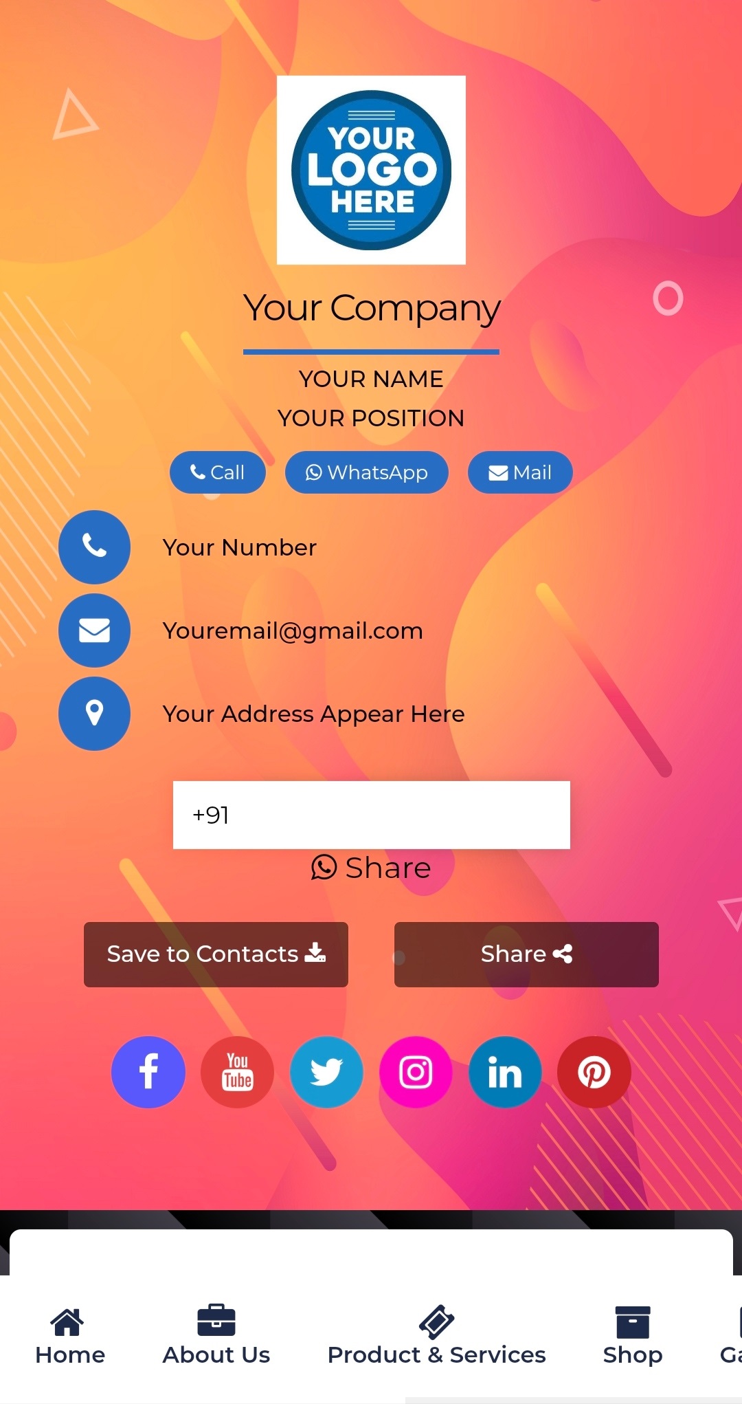Design your digital visiting card in 2 minutes - it's easy, elegant and free. This Online Vcard is always in your pocket, never tears and never runs out. Your Digital Visiting Card can be easily updated with our user-friendly dashboard, so you won't need to re-print a business card again.